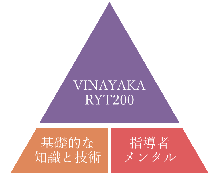 この2つの土台をしっかりと構築することでヨガインストラクターとして技術的にもメンタル的にも指導を開始できる状態になるようにカリキュラムを構成しています。